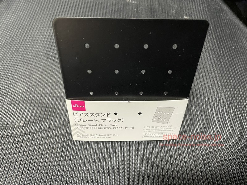 コレ、自宅と会社で使っているのですが、チョット大きいかな……と、思っていたところ、先日ダイソーに足を運んだ際に見かけたのがコレ『ピアススタンド』です。